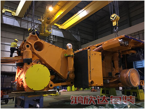 湘潭650噸礦山車出口澳洲,采用熱收縮防銹,發(fā)動機整體防護,其他出口熏蒸木箱打包裝箱,我司負責從包裝設(shè)計方案,現(xiàn)場打包及運輸一站式服務(wù),省去客戶其他多環(huán)節(jié)的操作,省時省力高效率節(jié)成本?!?